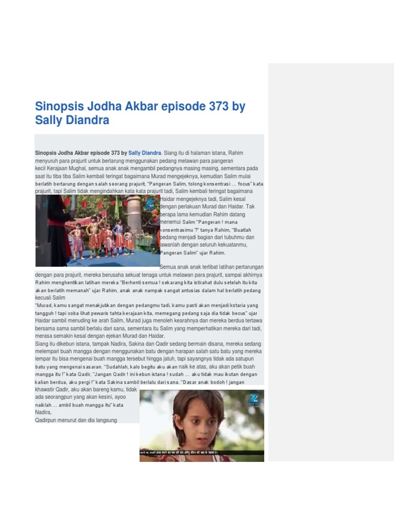 Hanya tuhan yg bs menolong nya sekarang. Kelakuan busuk adham mulai terusik. Tapi saat kau berbohong padaku, aku. Bagaimana perjalanan kisah cinta keduanya yang dipenuhi dengan berbagai intrik kerajaan? Di episode 325 ratu ruqaiya mempunyai rencana,dia berencana untuk mengasuh salah satu anak kembar ratu jodha,dan dia ingat saat selesai perang melawan nigaar,abul mali dan mahacuchak,raja jalal memberi sebuah permintaan bagi ratu istimewanya untuk mengajukan permintaan yang akan. Jodha sedang berbicara dengan moti di kamarnya. Raja jalal : mengapa kau menyembunyikan kabar ini dariku, ratu jodha raja jalal menatap ratu jodha :' ratu jodha, kau telah memberi ku hadiah terbaik dalam hidupku, sebagai balasannya aku akan memberikan sesuatu yang tidak terlupakan. Di kamar jodha, jalal duduk di sisi tempat tidur. Ingin membahas hal yg tidak ku sukai. Sinopsis jodha akbar episode 467 senin 23 maret 2015. Track kemunculan pertama atifa tayang di antv, 26 feb. Hamida bano panik dengan masalah yang sedang menimpa ruqaiyah, mereka semua khawatir takut terjadi sesuatu yang buruk terjadi pada ruqaiyah dan calon bayi yang dikandungnya. Sinopsis jodha akbar episode 26, maham anga menyarankan ruqaiya untuk melawan jodha.